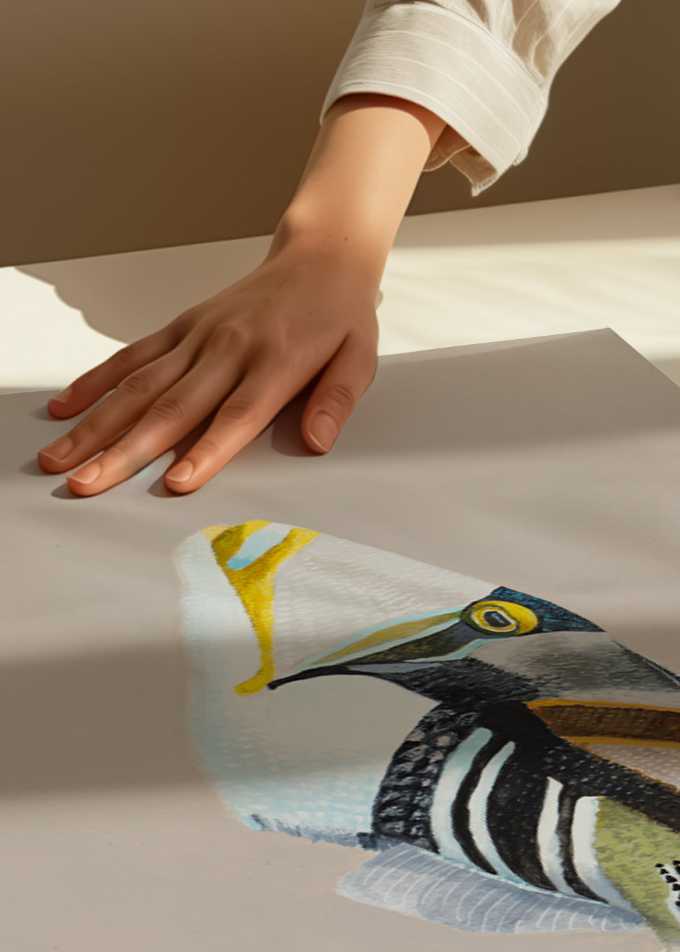 • Step 1: Protection with Silk Paper: Our local printer carefully rolls your art prints in silk paper around a sturdy cardboard tube. Each package is sealed with a small round label for added security.